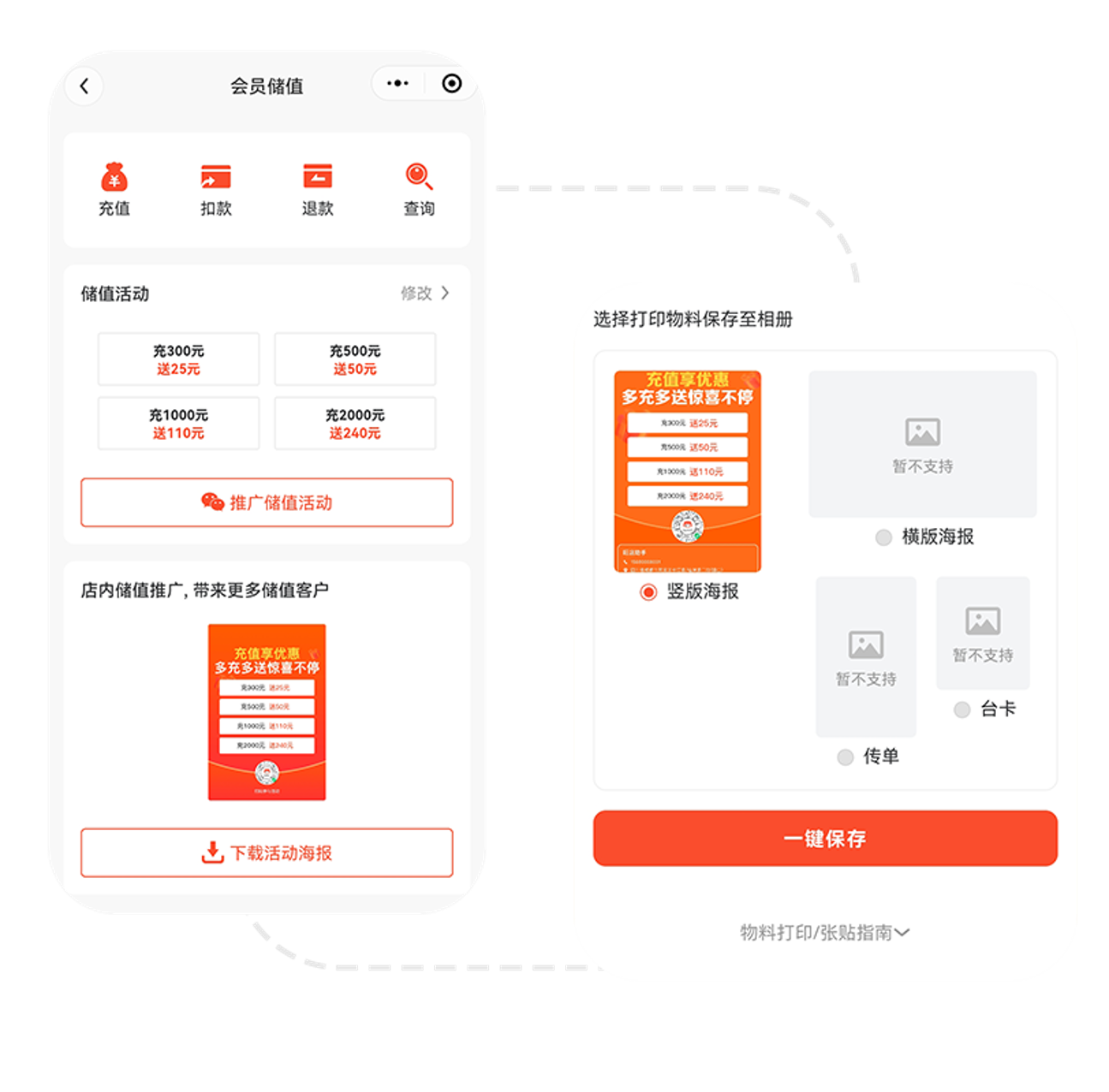 搭配储值返利活动吸引新客变老客,提前回流货款,顾客持续到店消费。