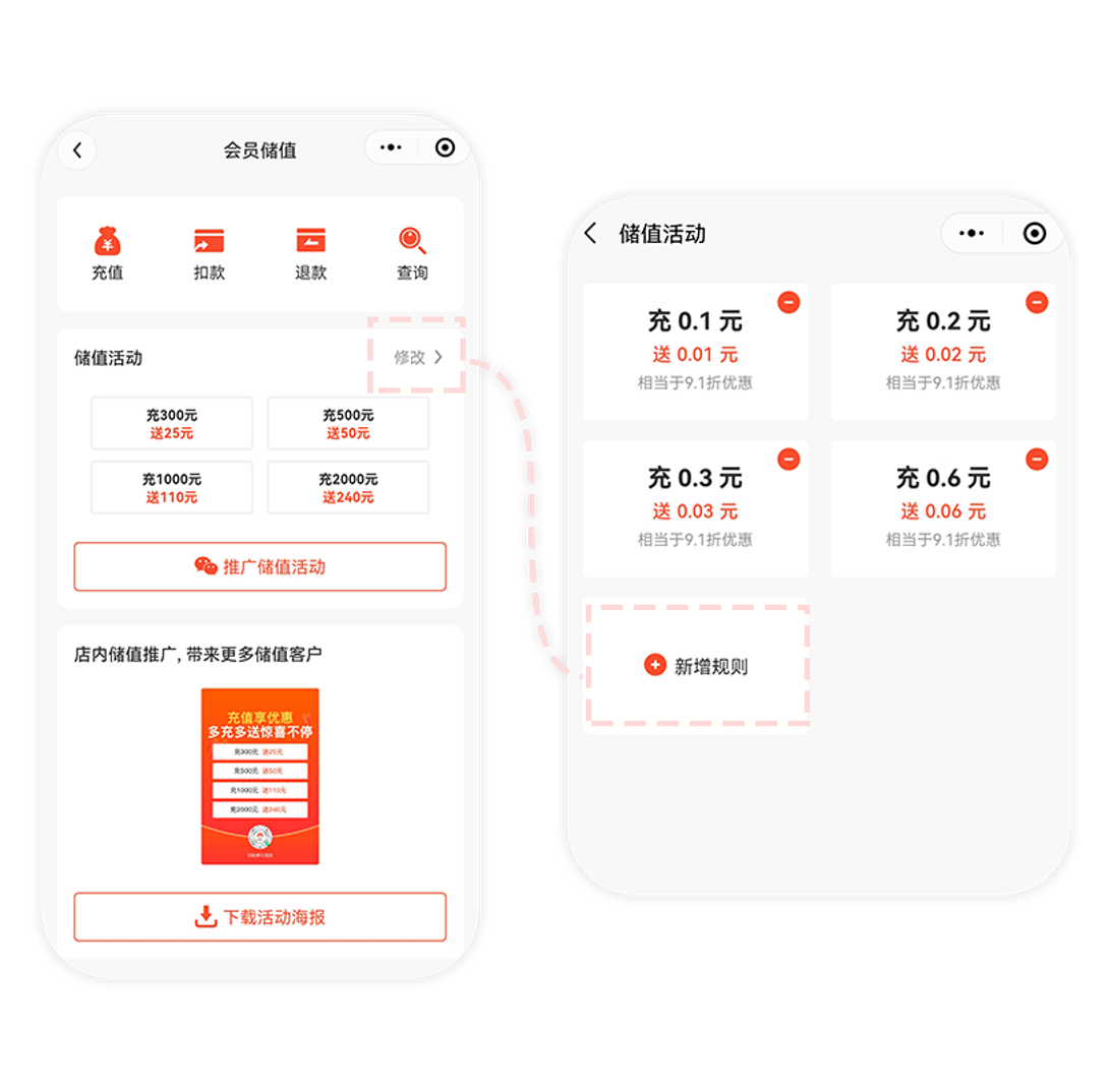 再小的门店,一样可以配置会员储值功能,锁定用户的未来消费。针对会员的独有权益,进一步刺激用户下单,复购停不下来。